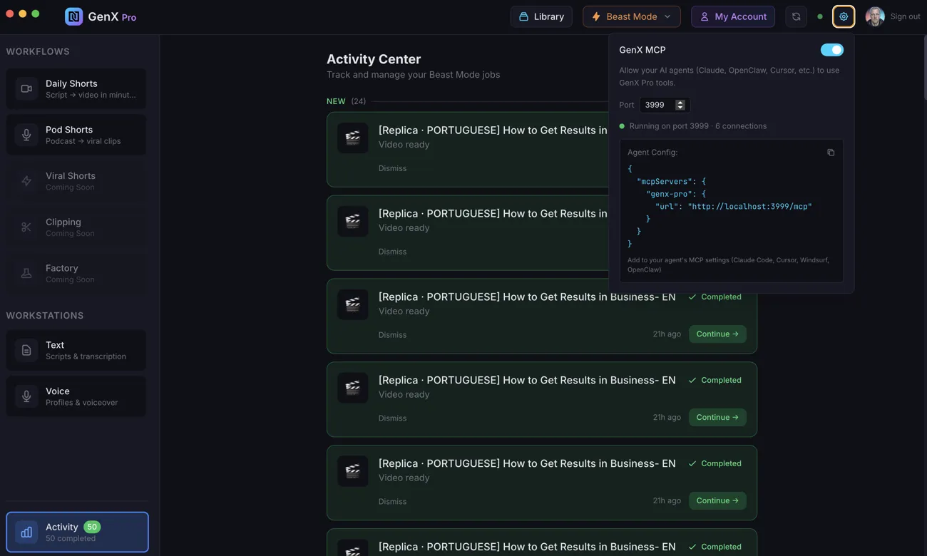 - ✓ Pod Shorts — viral clips from podcast episodes, ranked by hook score